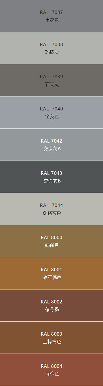 什么是RAL色卡?自從1927年,當RAL涉入色彩時,就創(chuàng)建了一種統(tǒng)一的語言,為豐富多彩的顏色建立標準統(tǒng)計和命名,這些標準在世界范圍內(nèi)被廣泛的理解和應用。 4位數(shù)的RAL顏色作為顏色標準已達70年之久,至今為止已發(fā)展到200多種。無光澤的顏色基礎(chǔ)色卡為RAL-840HR,有光澤的為841-GL,這些顏色基本色塊滿足了大范圍的應用,已被許多重要公司及研究機構(gòu)所使用。RAL-840HR及RAL-841GL 顏色注冊都作為顏色樣本應用于設(shè)計中,同時它們也包括了安全和信號色符合DIN及ISO規(guī)定的顏色要求。